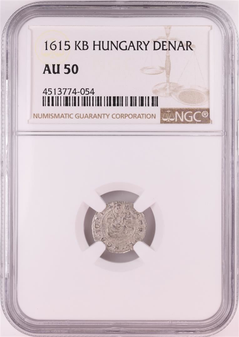One 1615 KB Hungary Denar 'Madonna and Child' Coin NGC AU50. NGC Certified.