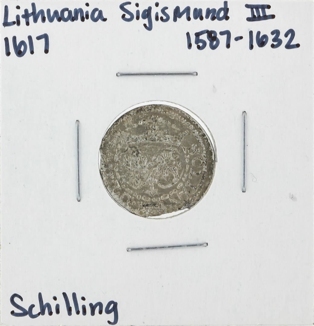 One 1617 Lithuania Sigismund III Schilling Silver Coin.