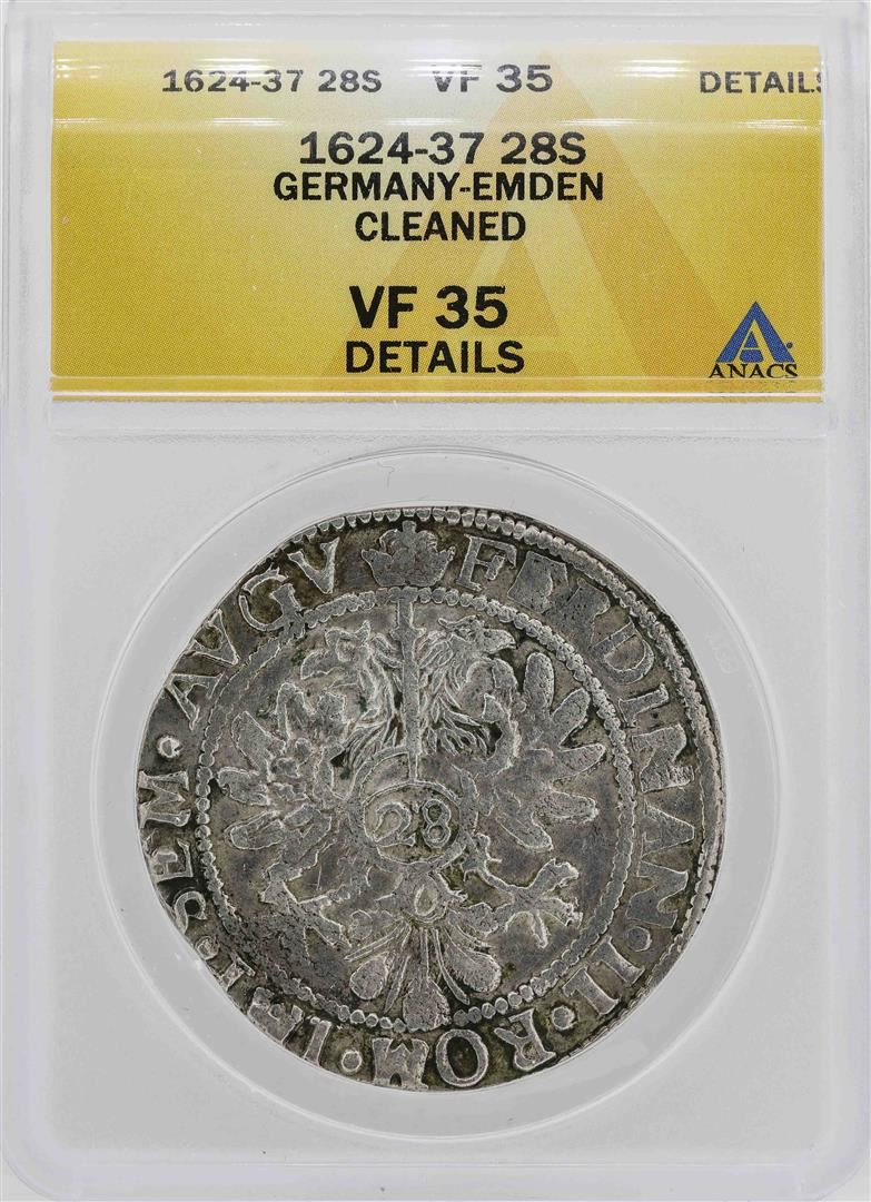 One 1624-37 Germany-Emden 28 Stuber Coin ANACS VF35 Details. ANACS Certified.