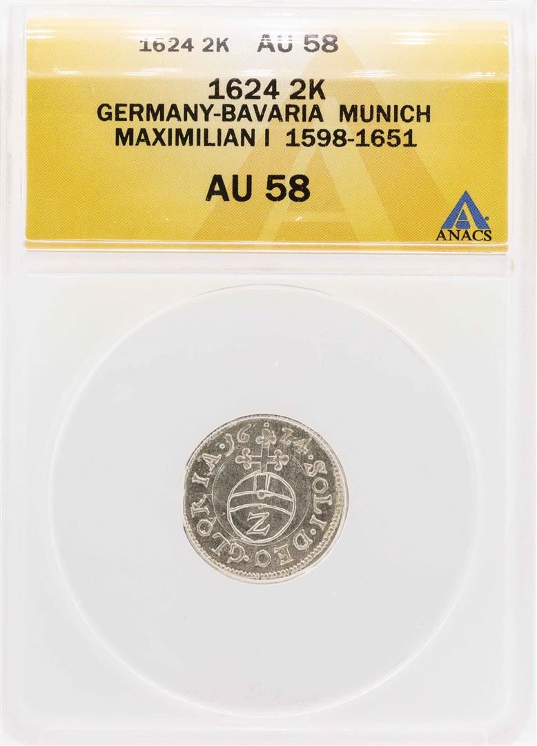 1624 Germany-Bavaria Munich Maximilian I 2 Kreuzer Coin ANACS AU58