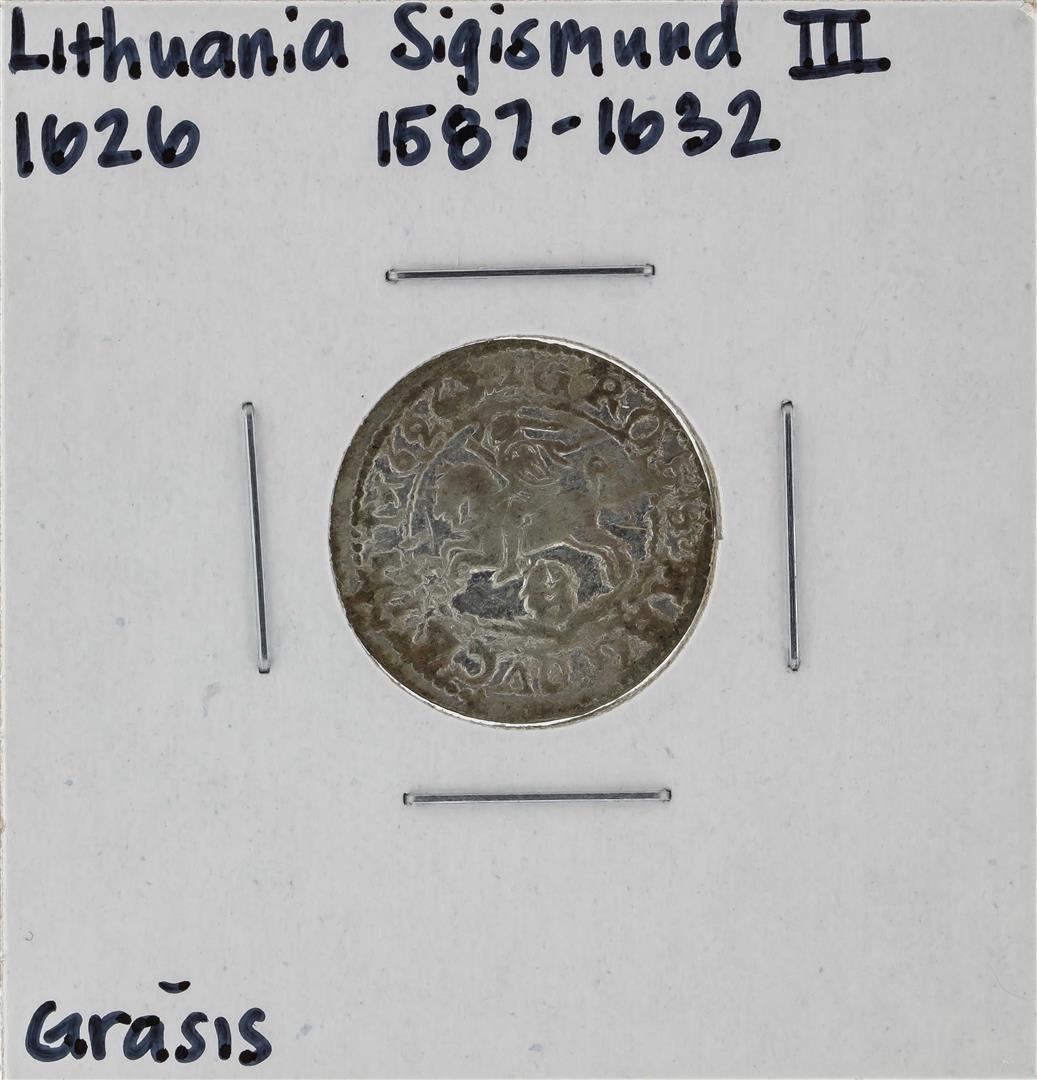 One 1626 Lithuania Sigismund III Grasus Silver Coin.