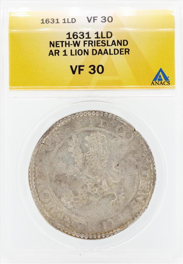 One 1631 Neth W Friesland AR 1 Lion Daalder Coin ANACS VF30. ANACS Certified.