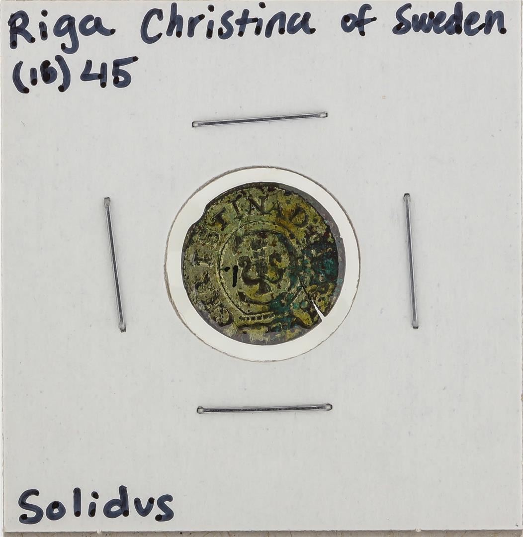 One 1645 Riga Christina of Sweden Solidus Coin.