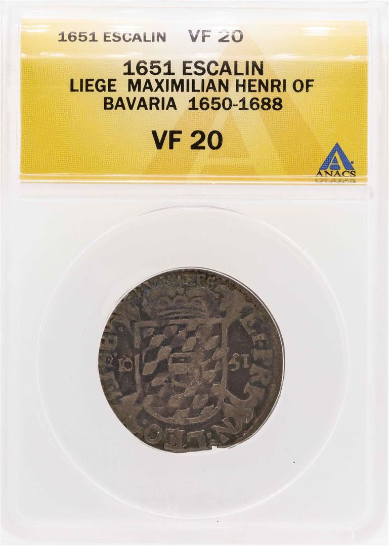 1651 Liege Maximilian Henri Of Bavaria Escalin Coin ANACS VF20