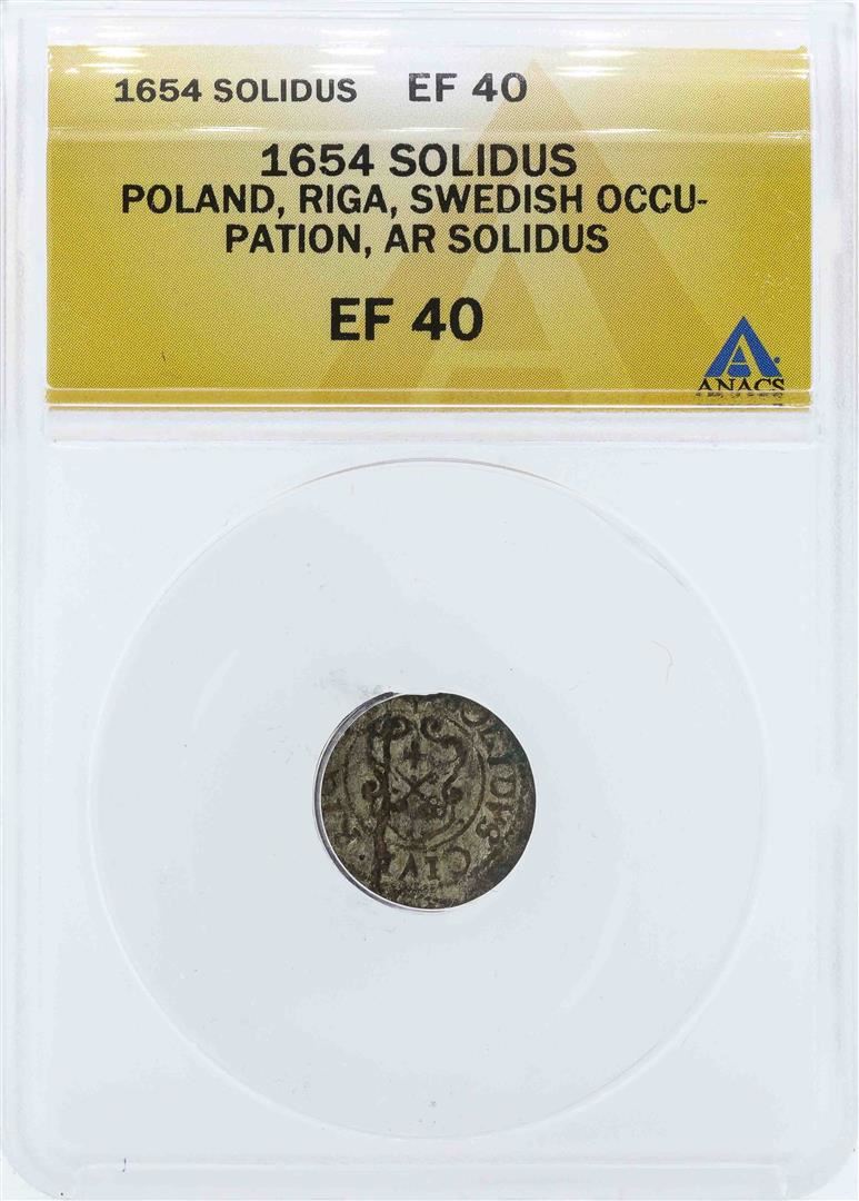 One 1654 Poland Solidus Coin ANACS EF40. ANACS Certified.
