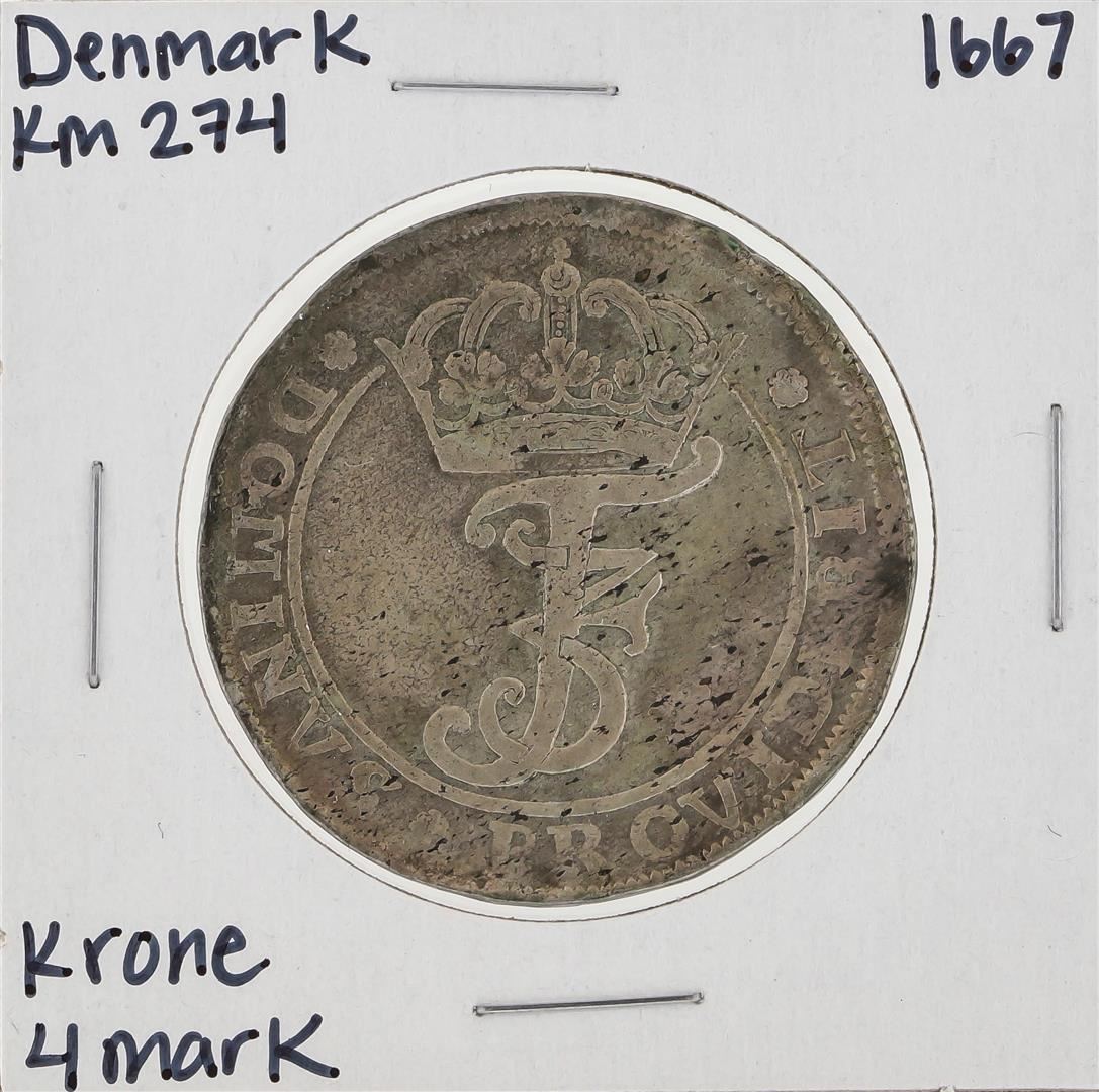 One 1667 KM274 Denmark Krone 4 Mark Coin .
