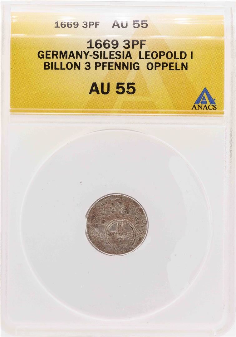 1669 Germany-Silesia Leopold I Billion 3 Pfennig Oppeln Coin ANACS AU55