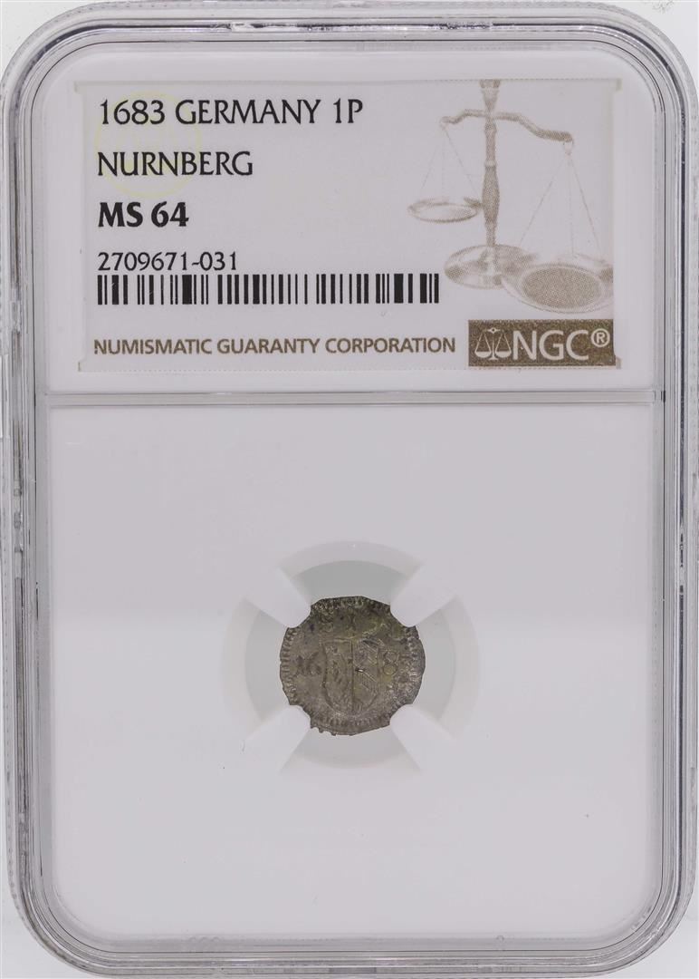 One 1683 Germany 1 Pfennig Nurnberg Coin NGC MS64. NGC Certified.