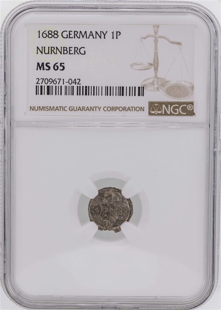 One 1688 Germany 1 Pfennig Nurnberg Coin NGC MS65. NGC Certified.