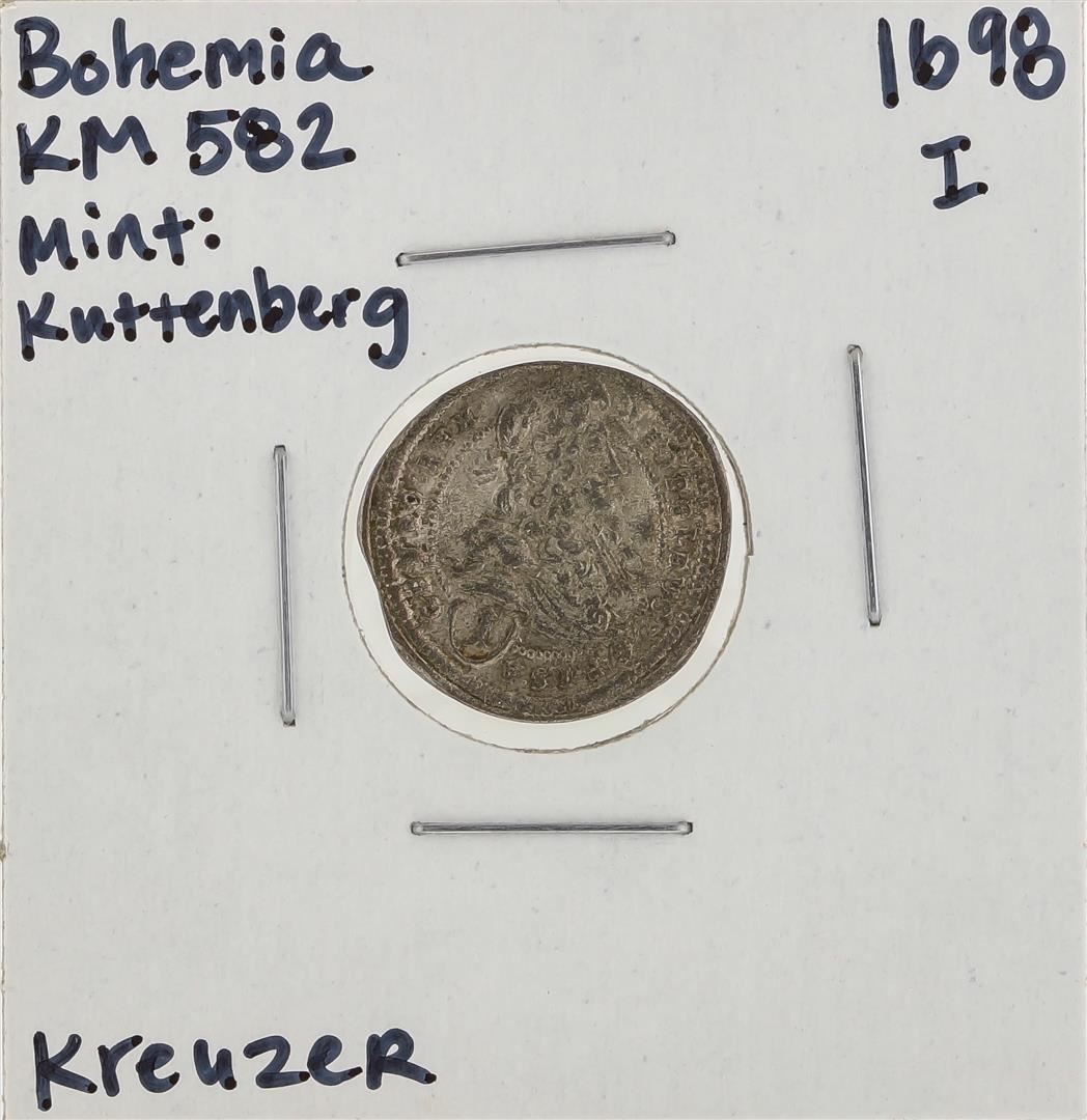 One 1698 I Bohemia Kreuzer KM582 Silver Coin.