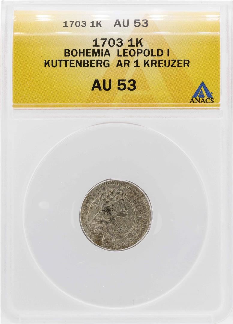 One 1703 Bohemia Kreuzer Leopold I Kuttenberg Silver Coin ANACS AU53. ANACS Certified.
