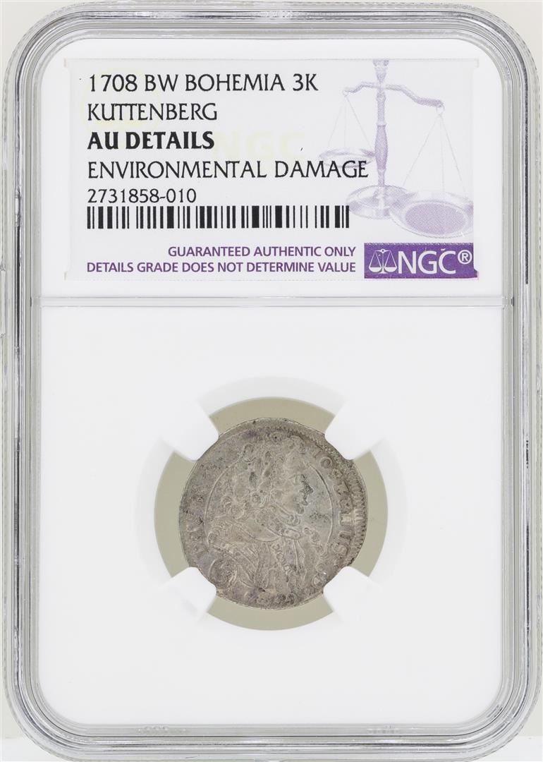 One 1708 Bohemia 3K Kuttenberg Coin NGC AU Details. NGC Certified.