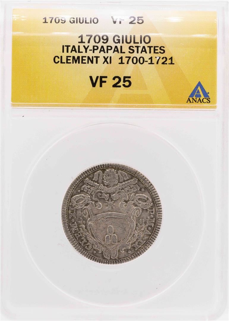 1709 Italy-Papal States Clement XI Giulio Coin ANACS VF25