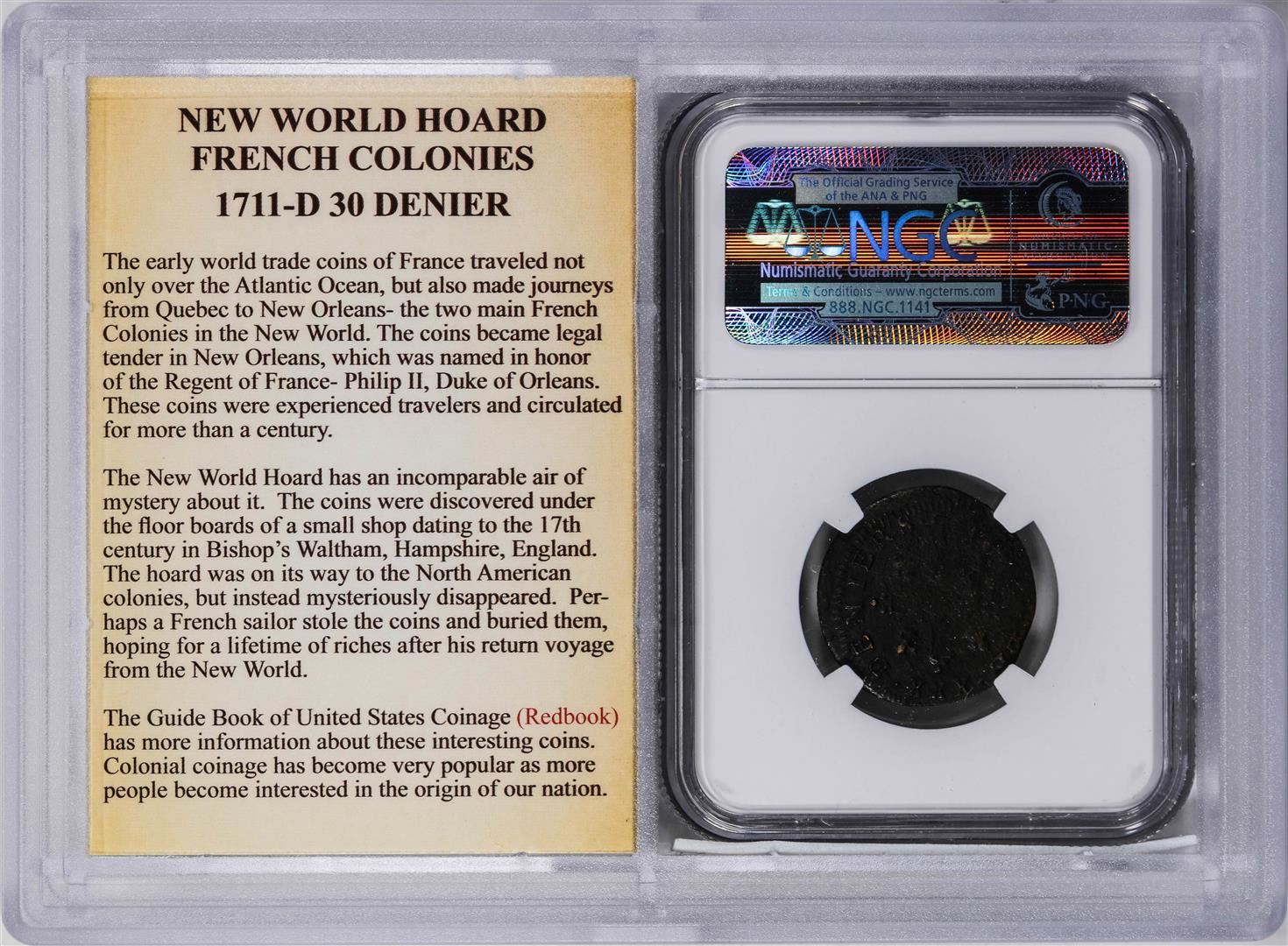 1711-D French Colonies 30 Denar New World Hoard NGC Genuine with Story Box