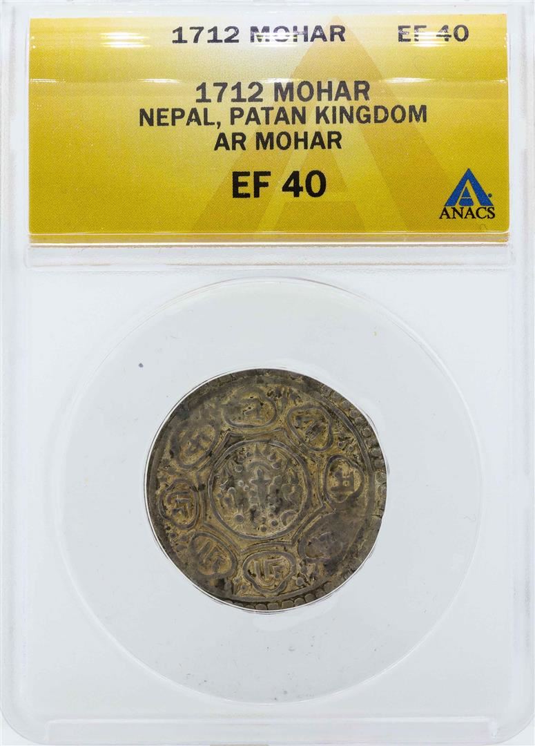 One 1712 Nepal Mohar Patan Kingdom Coin ANACS EF40. ANACS Certified.