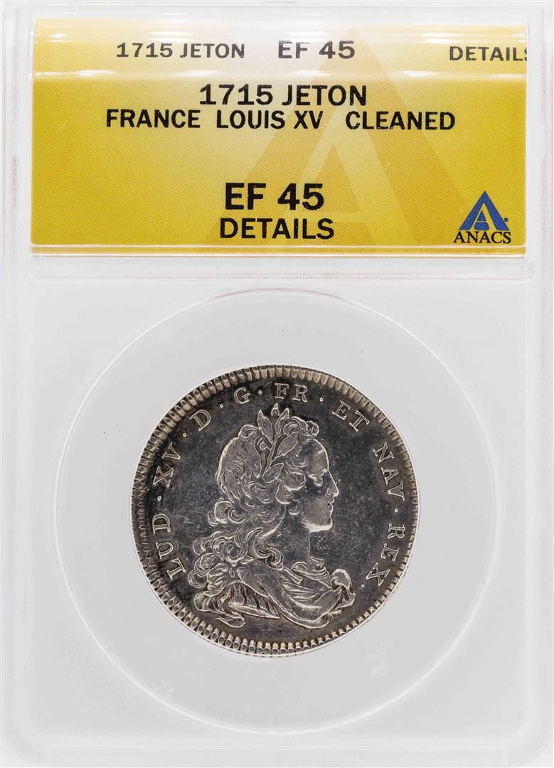One 1715 France Jeton Louis XV Silver Coin ANACS XF45 Details. ANACS Certified.