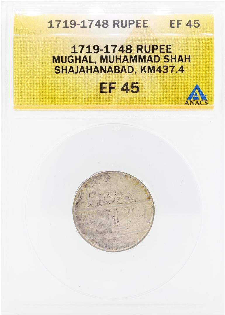 One 1719-1748 Rupee Mughal Muhammad Shah Shajahanabad Coin ANACS EF45. ANACS Certified.