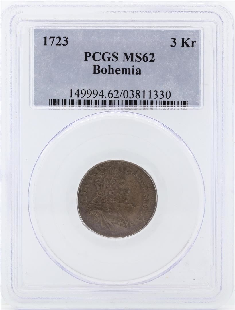 One 1723 Bohemia 3 Kreuzer Coin PCGS MS62. PCGS Graded.