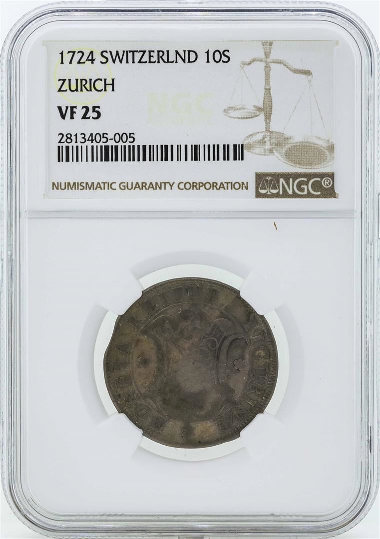 One 1724 Switzerland 10 Schweiz Coin NGC VF25. NGC Certified.