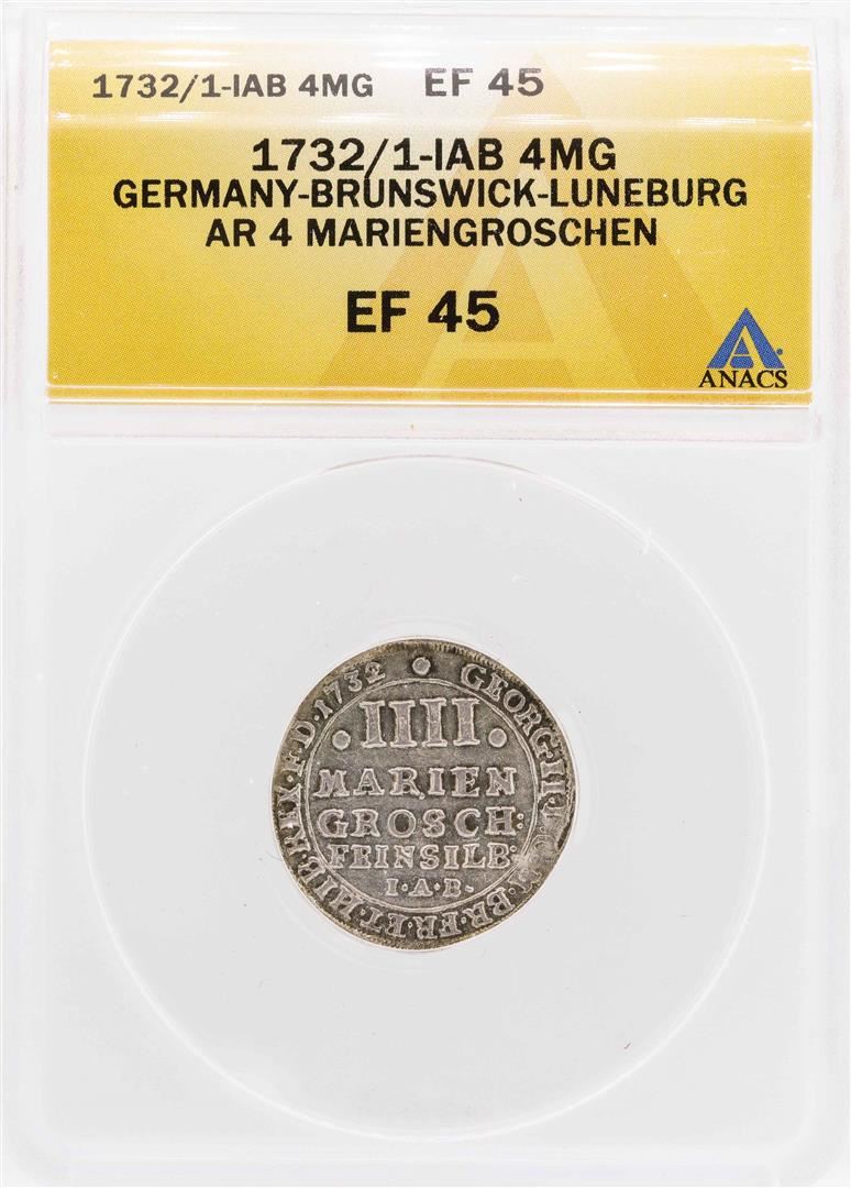 One 1732/1-IAB Germany Brunswick Luneburg AR 4 Mariengroschen Coin ANACS XF45. ANACS Certified.