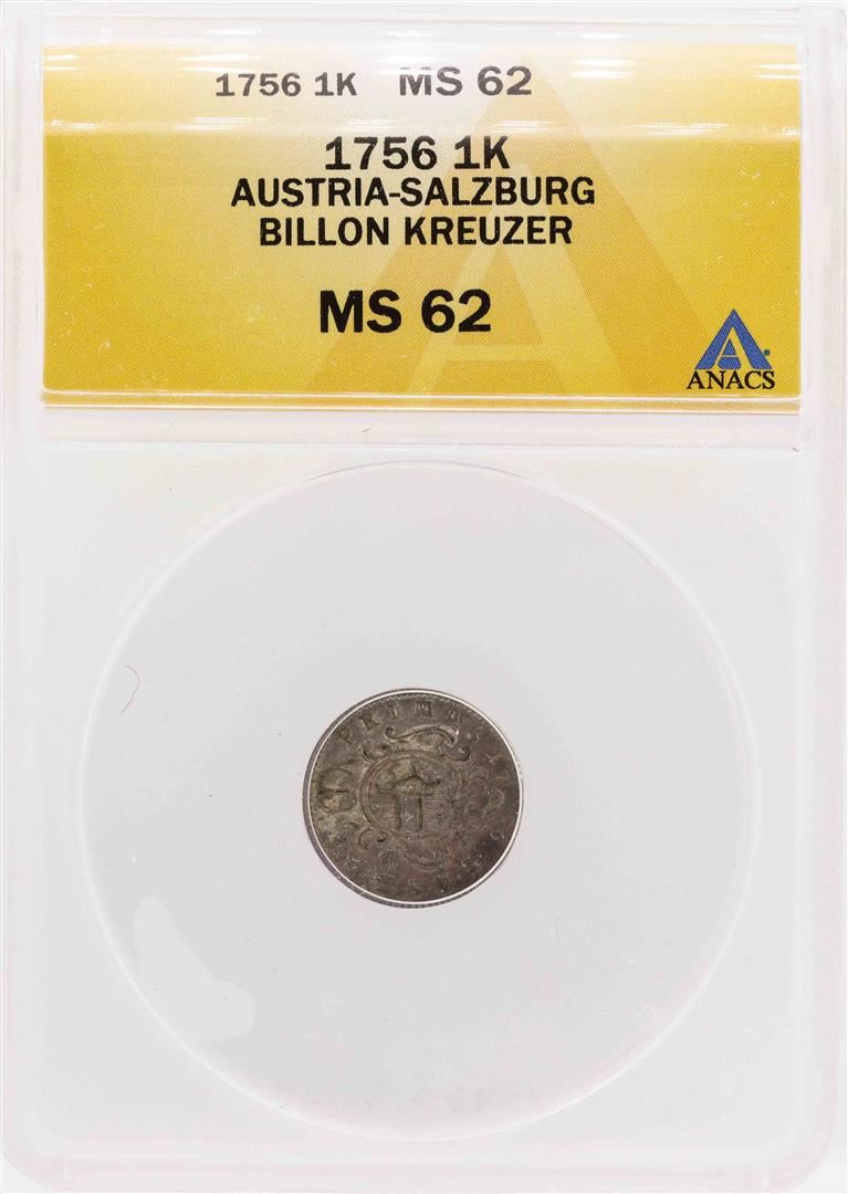 One 1756 Austria-Salzburg Billion Kreuzer Coin ANACS MS62. ANACS Certified.