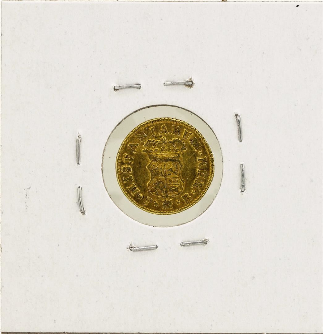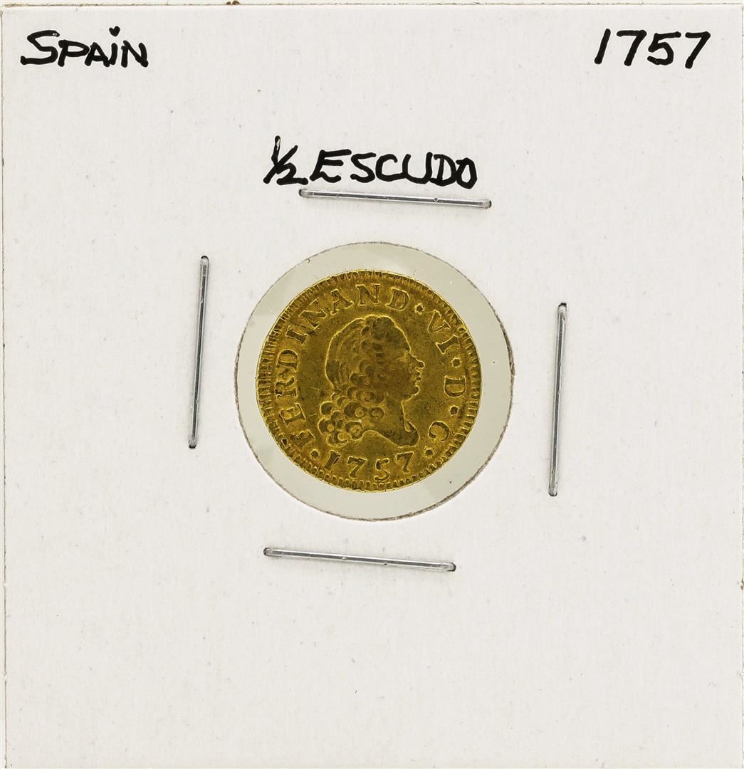 One 1757 Ferdinand VI Spanish 1/2 Escudos Gold Coin.