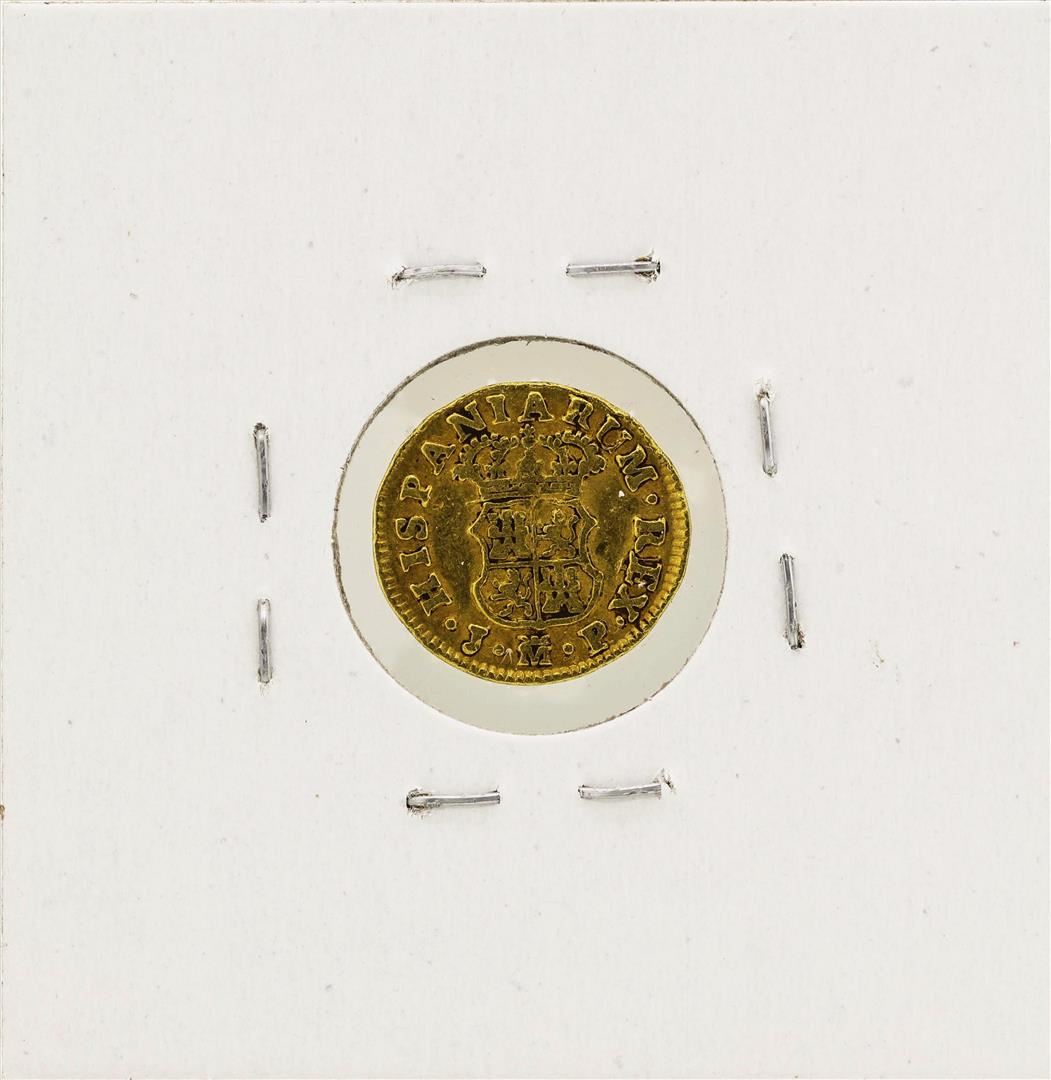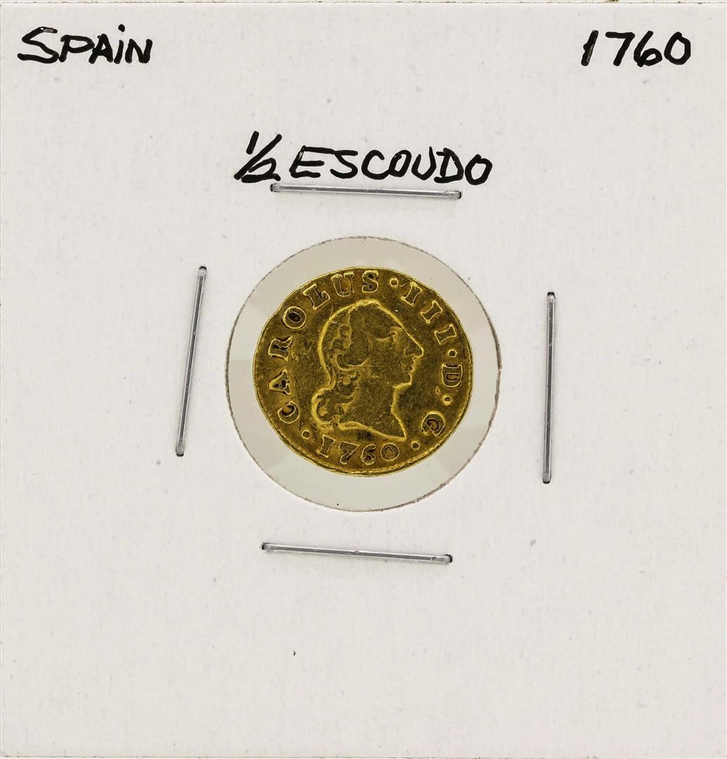 One 1760 Carolus III Spanish 1/2 Escudos Gold Coin.