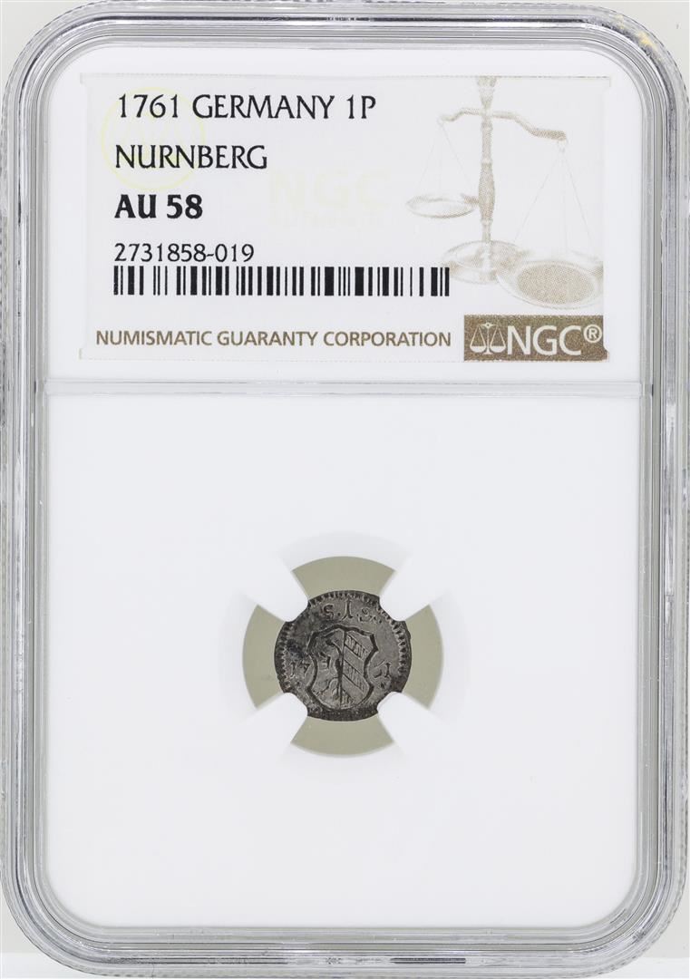 One 1761 Germany 1P Nurnberg Coin NGC AU58. NGC Certified.