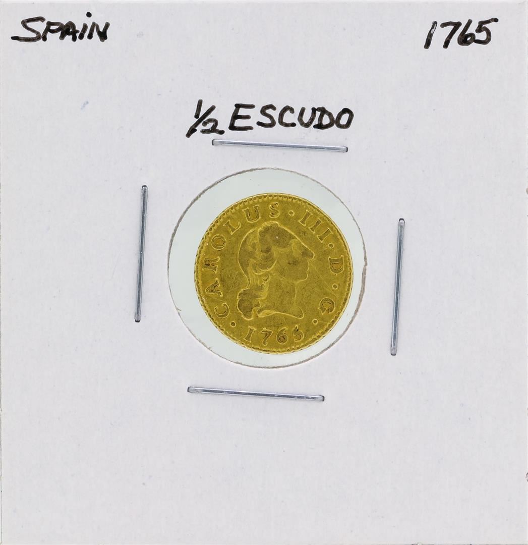 One 1765 Charles III Spanish 1/2 Escudos Doubloon Gold Coin.