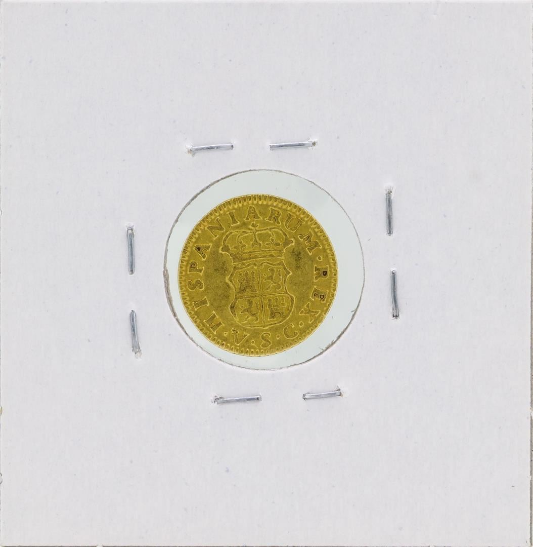 One 1765 Charles III Spanish 1/2 Escudos Doubloon Gold Coin.