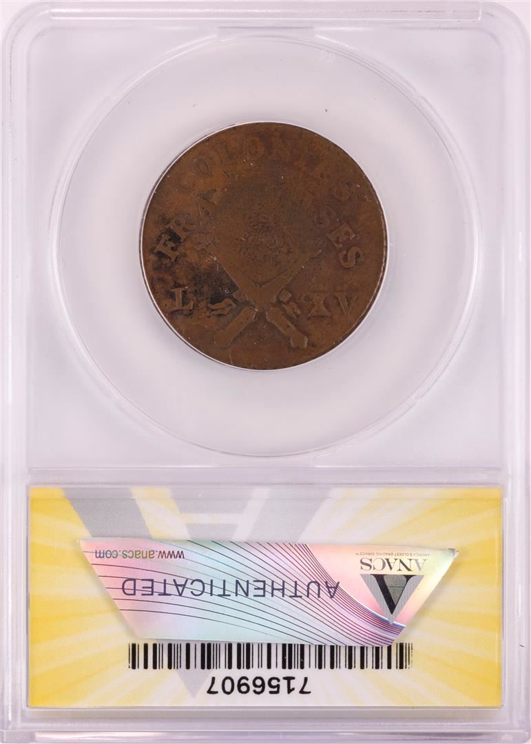 1767-A French Colonies 12 Deniers Coin ANACS VF20 'RF' Countermark