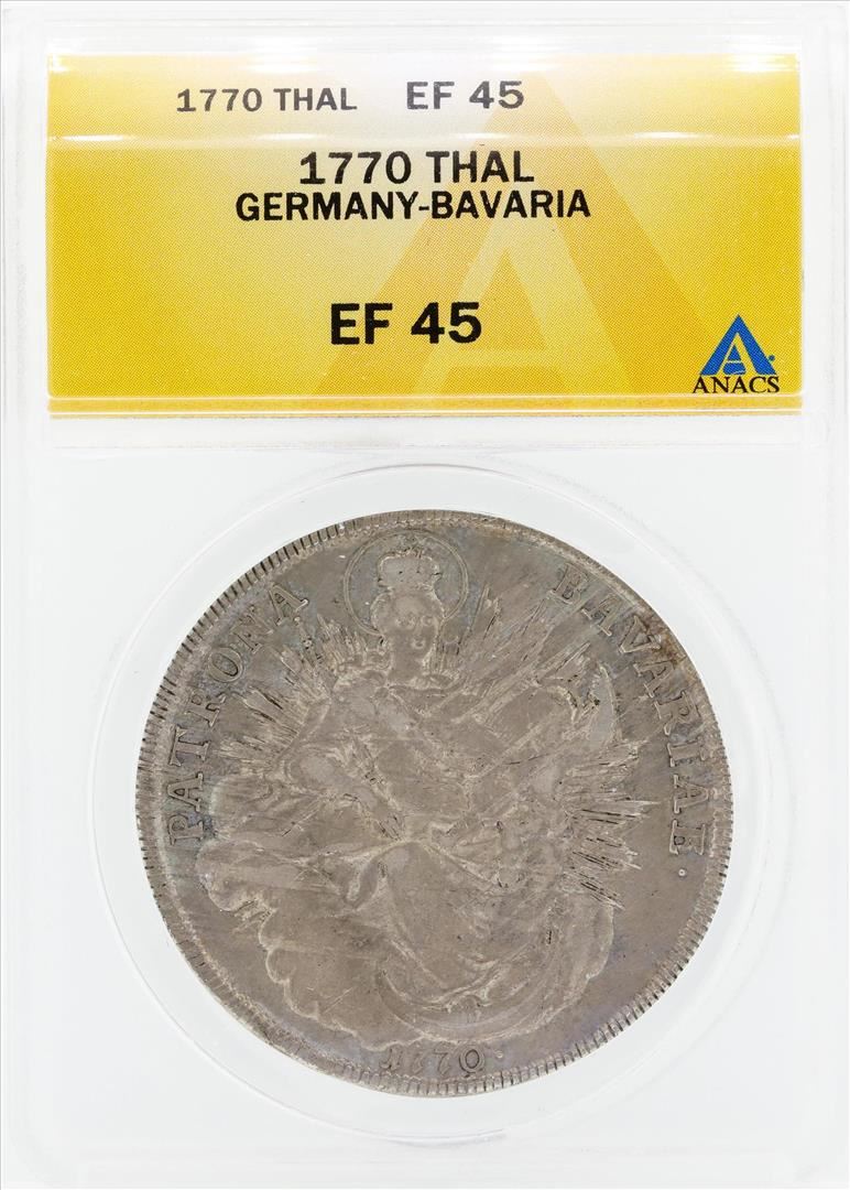 One 1770 Thal Germany Bavaria Coin ANACS EF45. ANACS Certified.