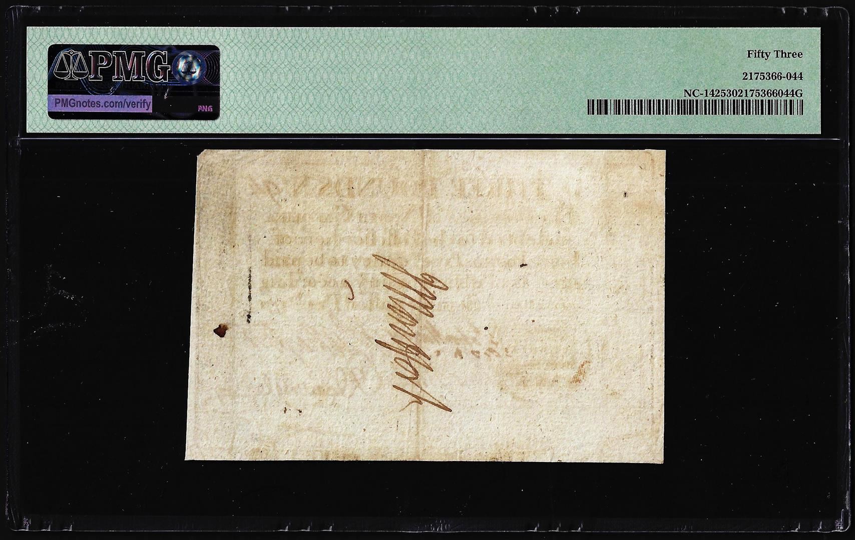1771 North Carolina 3 Pounds Colonial NC-142 PMG About Uncirculated 53 Magna Charta