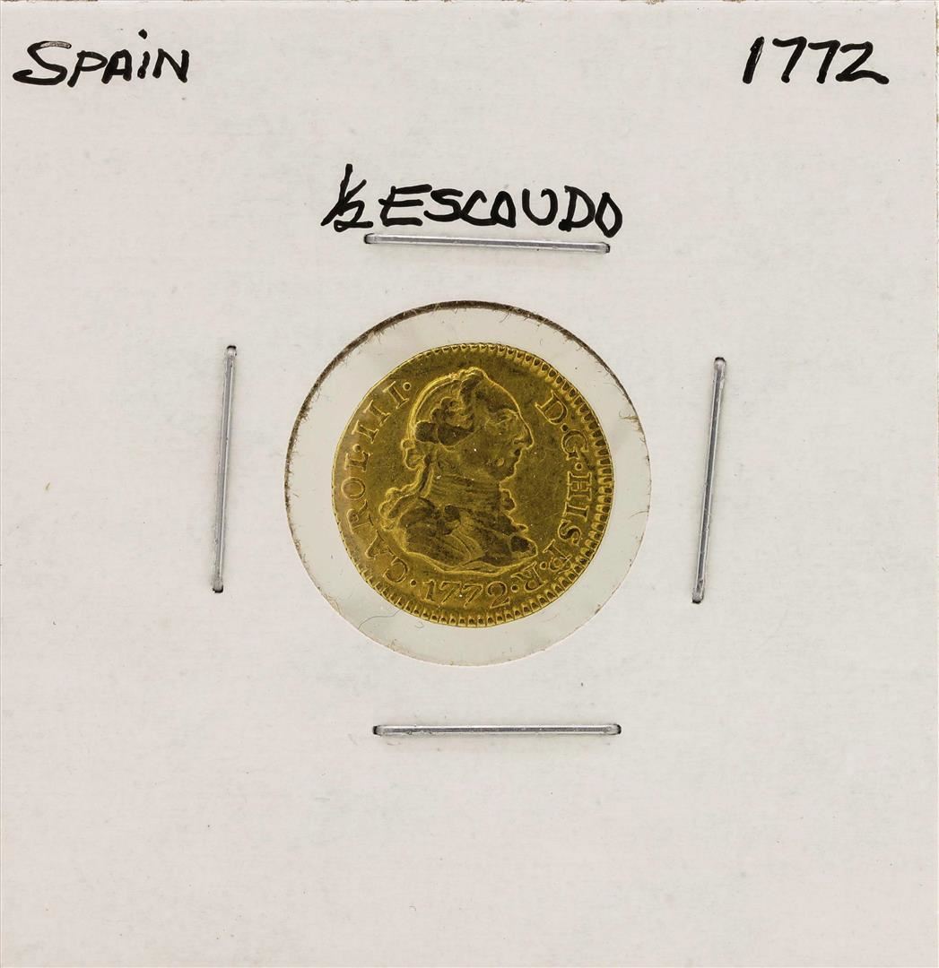 One 1772 Charles III Spanish 1/2 Escudos Gold Coin.