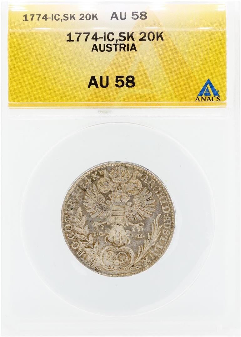 One 1774-IC SK 20 Kreuzer Austria Coin ANACS AU58. ANACS Certified.