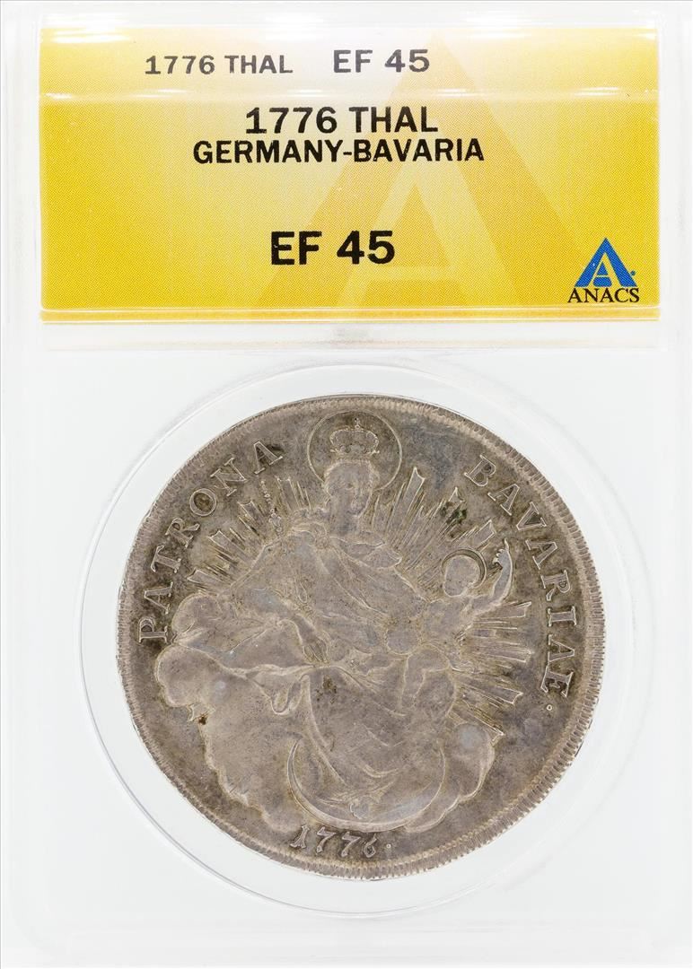 One 1776 Thal Germany Bavaria Coin ANACS EF45. ANACS Certified.