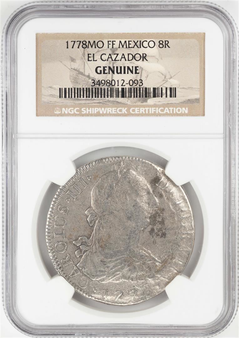 One 1778MO FF Mexico 8 Reales El Cazador Shipwreck Coin NGC Genuine. NGC Certified.