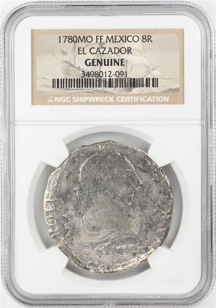 One 1780MO FF Mexico 8 Reales El Cazador Shipwreck Coin NGC Genuine. NGC Certified.