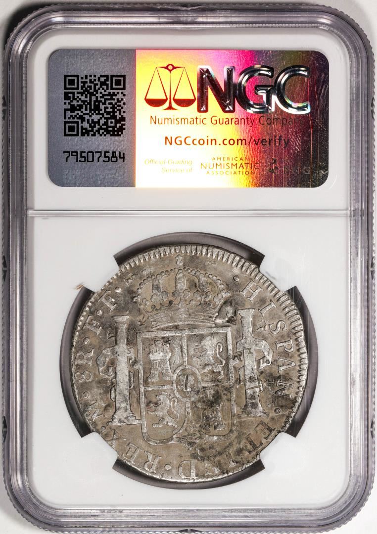 One 1781MO FF Mexico 8 Reales Silver Coin NGC Fine Details Chopmarked. NGC Certified.