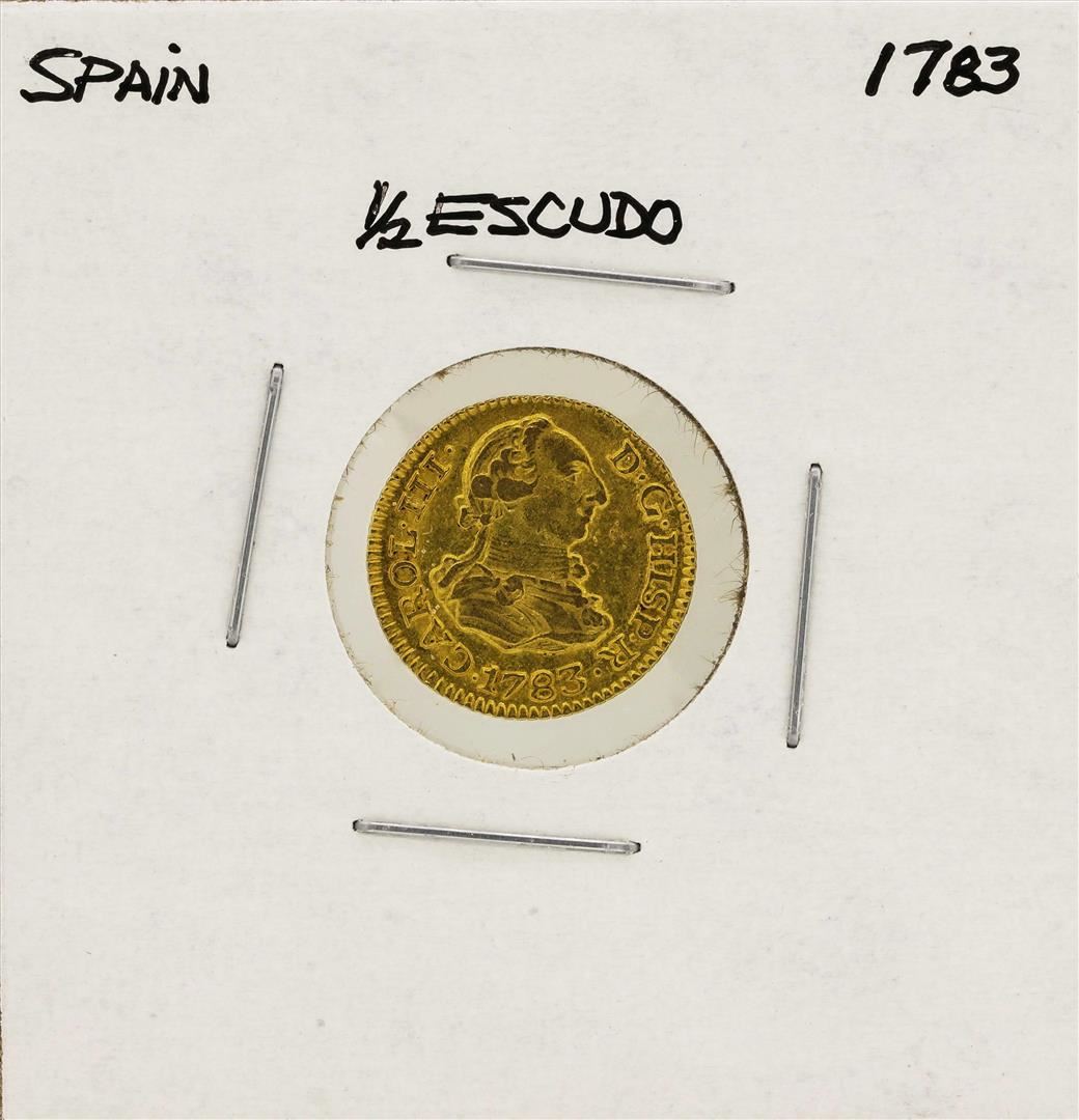 One 1783 Charles III Spanish 1/2 Escudos Gold Coin.