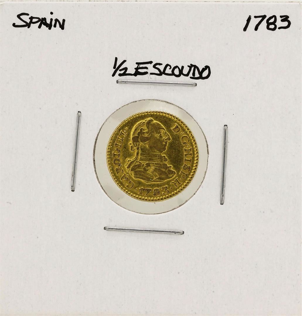 One 1783 Charles III Spanish 1/2 Escudos Gold Coin.