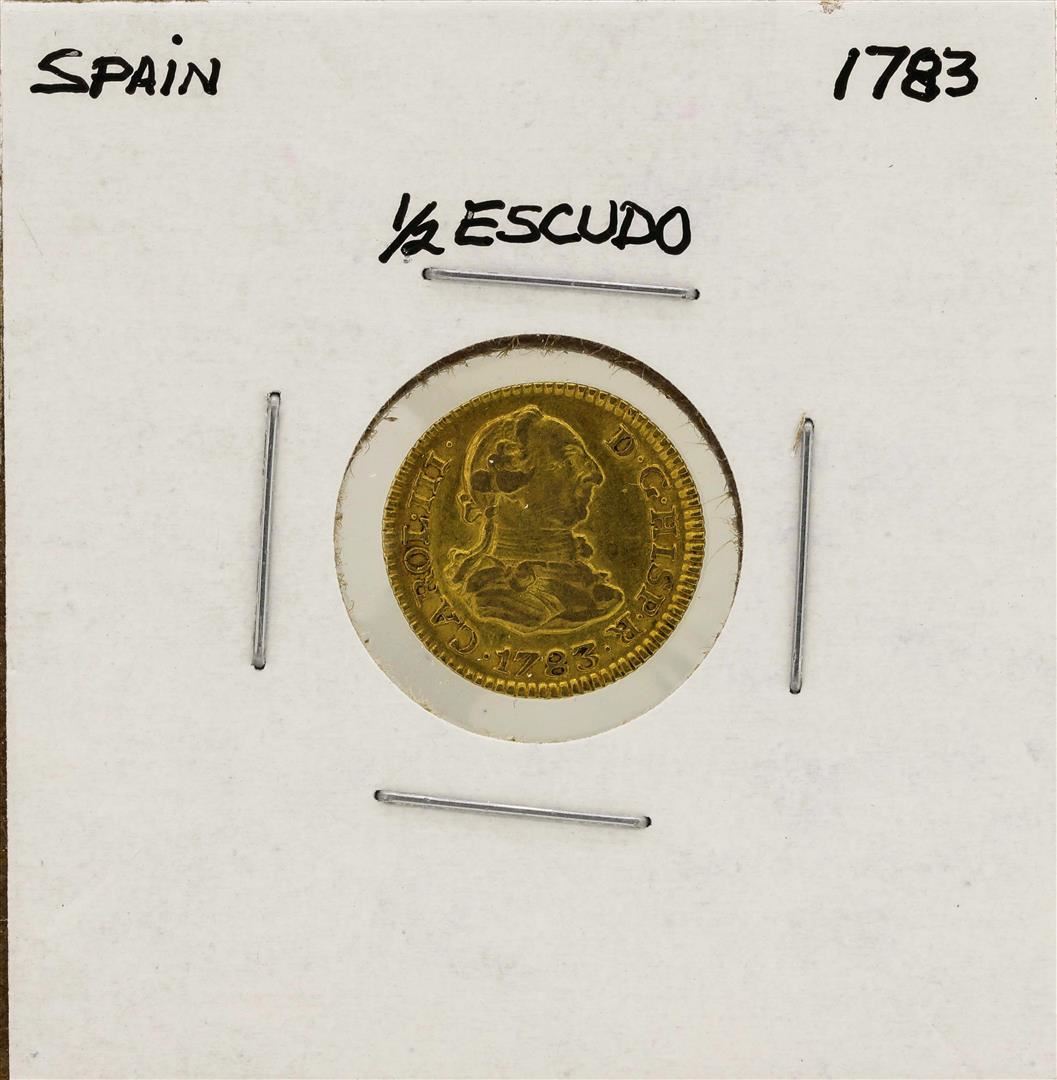 One 1783 Charles III Spanish 1/2 Escudos Gold Coin.