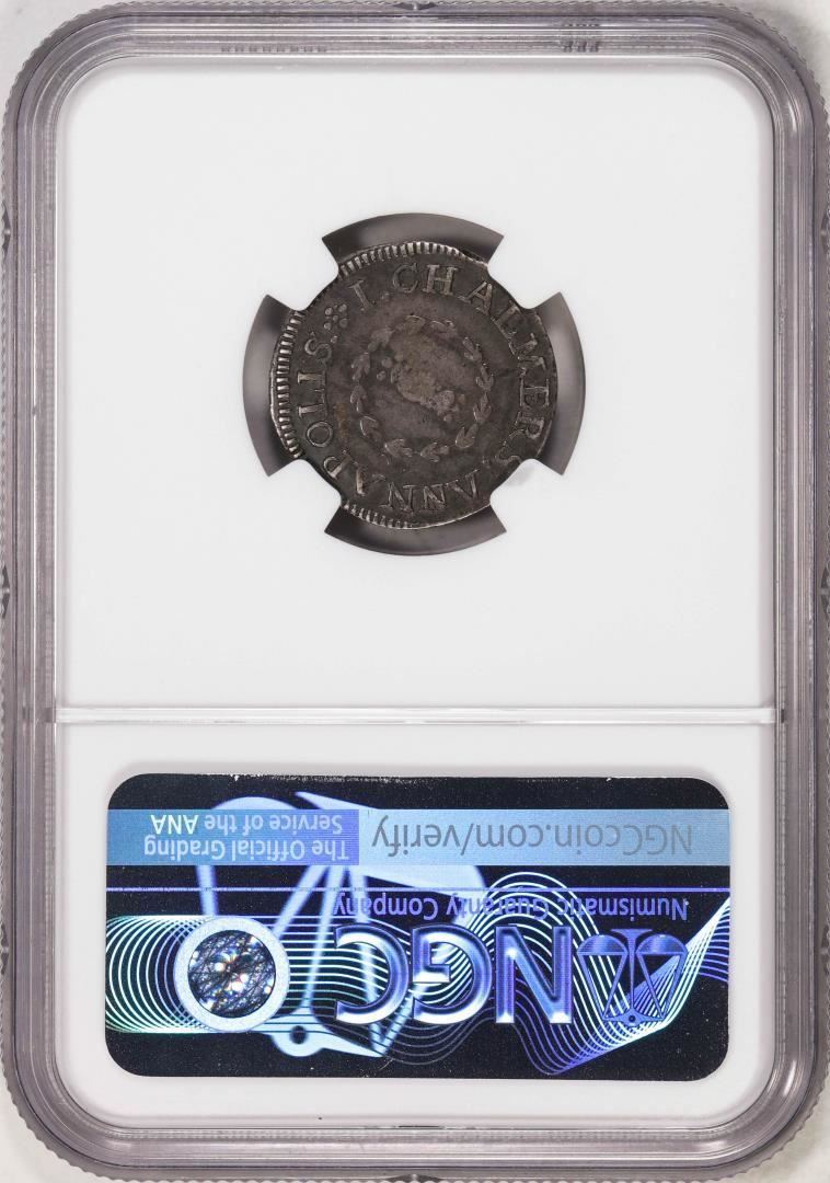 One 1783 SH Worm Chalmers Shilling Maryland Colonial Coin NGC VF Details. NGC Certified.