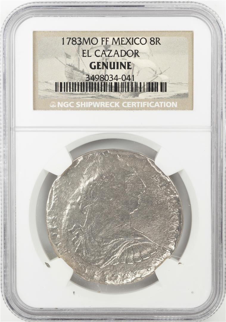 One 1783MO FF Mexico 8 Reales El Cazador Shipwreck Coin NGC Genuine. NGC Certified.