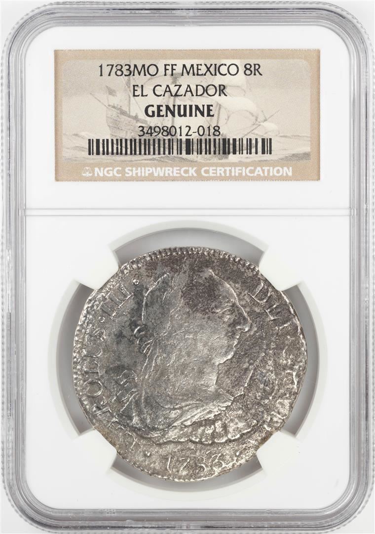 One 1783MO FF Mexico 8 Reales El Cazador Shipwreck Coin NGC Genuine. NGC Certified.