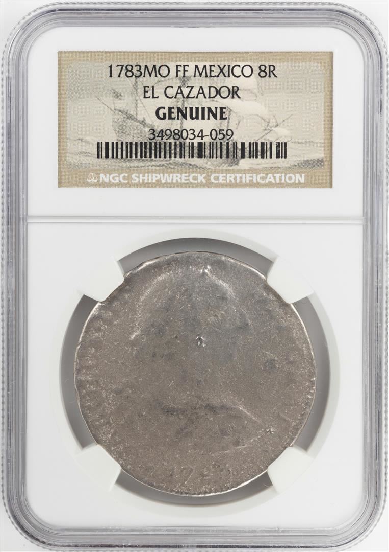 One 1783MO FF Mexico 8 Reales El Cazador Shipwreck Coin NGC Genuine. NGC Certified.