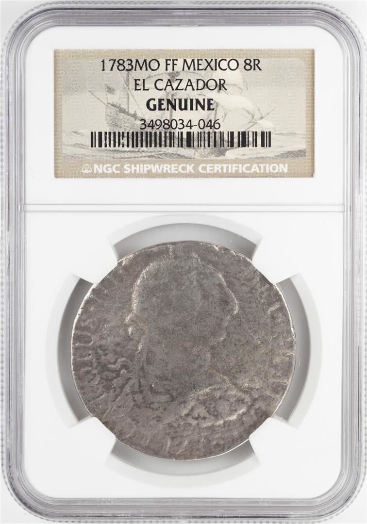 One 1783MO FF Mexico 8 Reales El Cazador Shipwreck Coin NGC Genuine. NGC Certified.