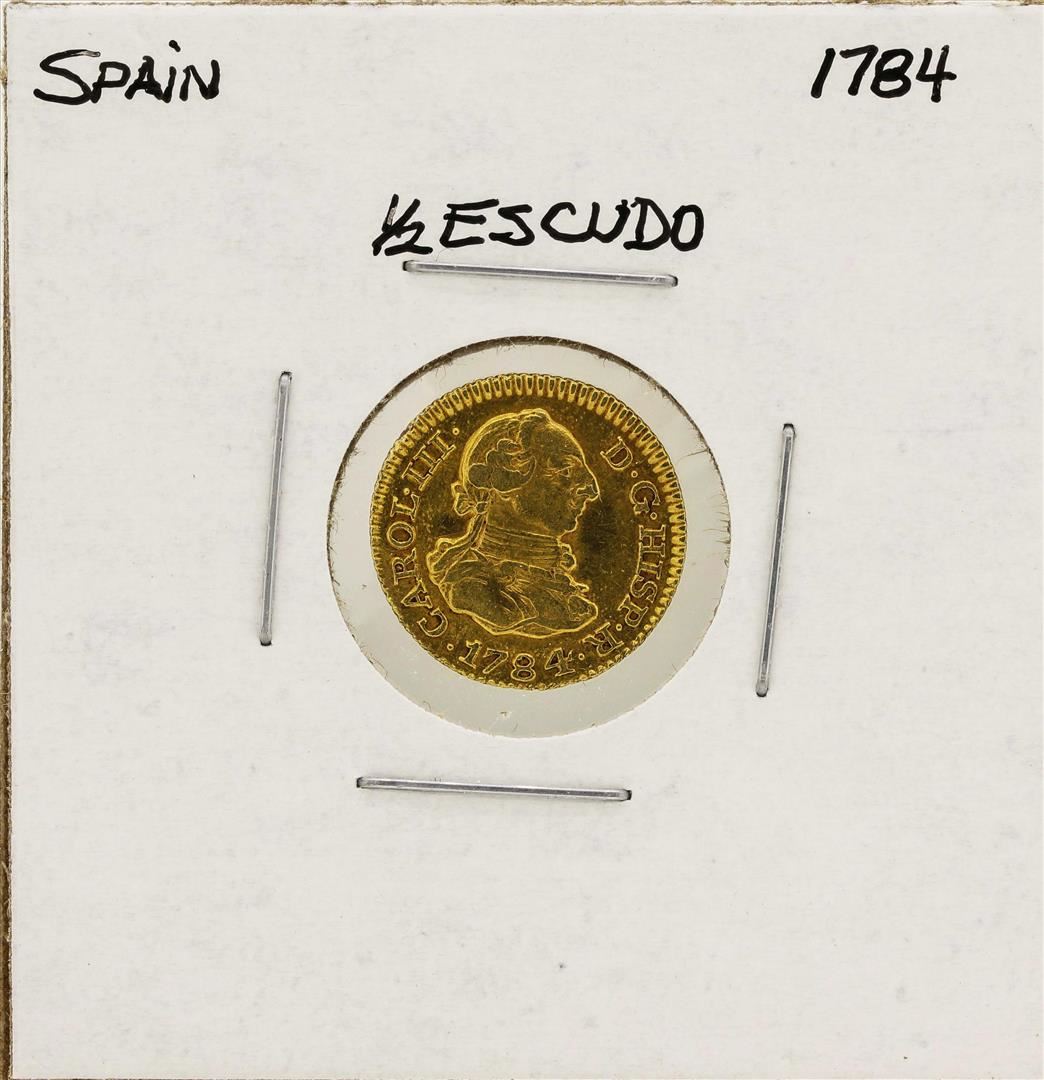 One 1784 Charles III Spanish 1/2 Escudos Gold Coin.