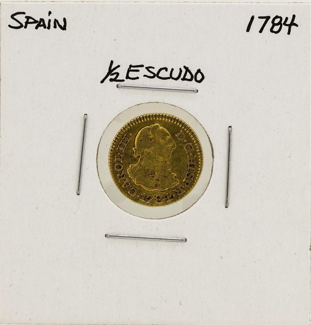 One 1784 Charles III Spanish 1/2 Escudos Gold Coin.