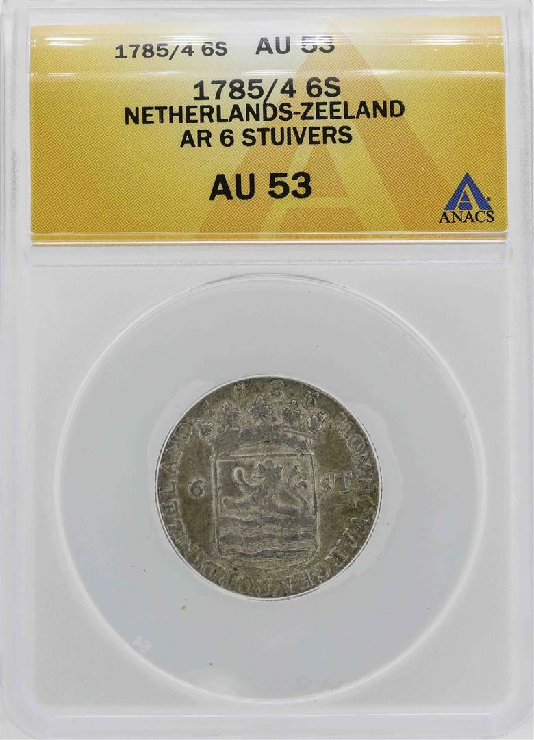 One 1785 Netherlands-Zeeland 6 Stuivers Coin ANACS AU53. ANACS Certified.